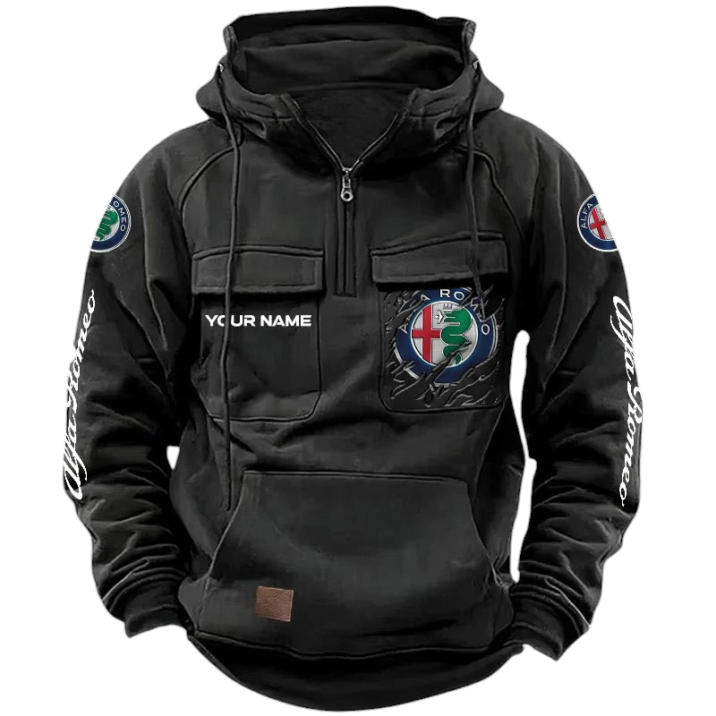 Alfa Romeo Quarter Zip Hoodie, Sports Hoodie Multi-Pockets, Custom Name HG020525Y41HJRCT1ALR