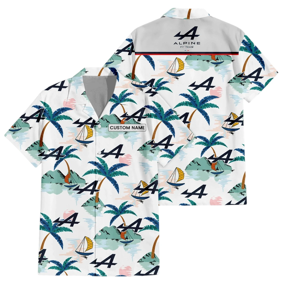 Alpine F1 Team Exclusive Logo Button Up Hawaiian Shirt Tropical Landscape Pattern All-over Print, Custom Name HIDI180225Y7HWLS2ALP