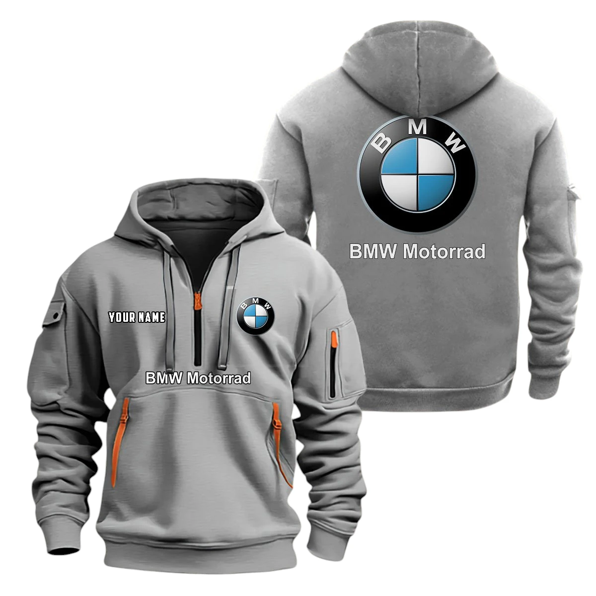BMW Motorrad Half Zip Hoodie, Sports Hooded Multi-Pockets, Custom Name TN0030325Y25QZ2HCT2BMM