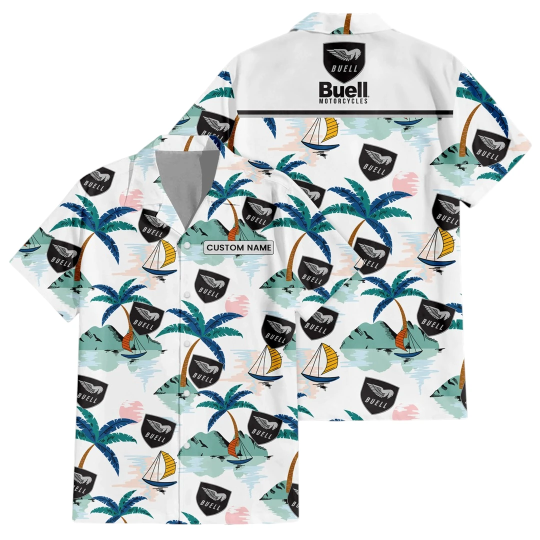 Buell Motorcycle Exclusive Logo Button Up Hawaiian Shirt Tropical Landscape Pattern All-over Print, Custom Name HIDI180225Y7HWLS2BUE