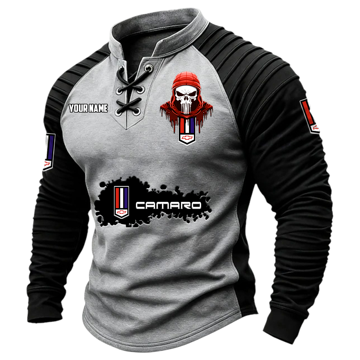 Chevrolet Camaro Vintage Lace-Up Long Sleeve Shirt Custom Text
