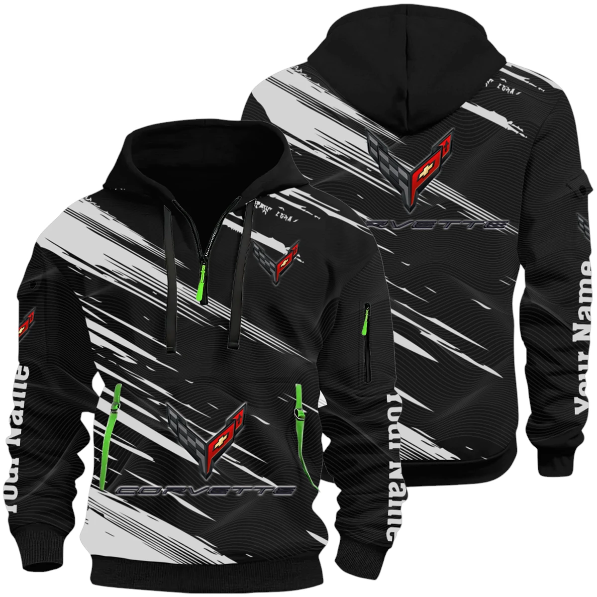 Corvette Half Zip Hoodie All Over Prints, Multi-Pockets Custom Name HIHI050625Y26QZ3HCOR