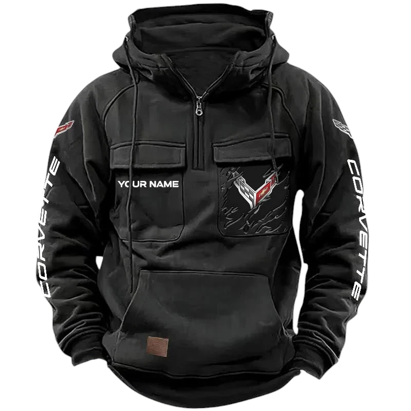 Corvette Quarter Zip Hoodie, Sports Hoodie Multi-Pockets, Custom Name HG070525Y41HJRCT2COR
