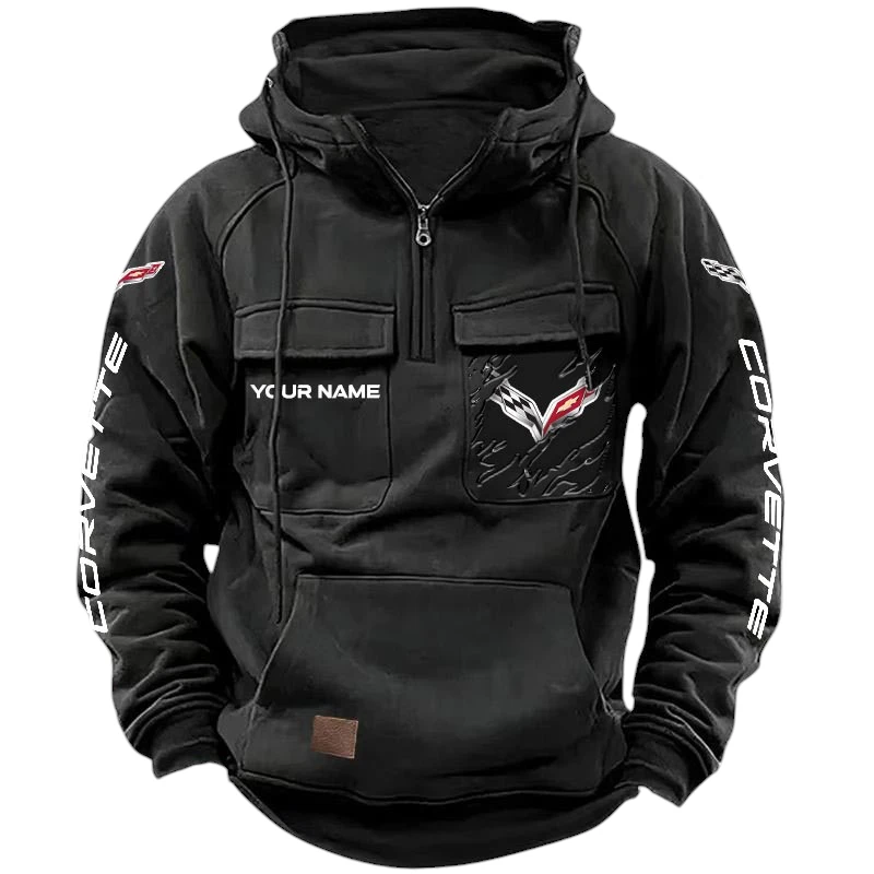 Corvette Quarter Zip Hoodie, Sports Hoodie Multi-Pockets, Custom Name HG070525Y41HJRCT3COR