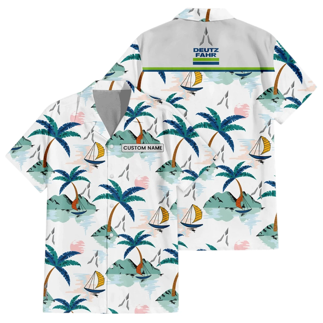 Deutz Exclusive Logo Button Up Hawaiian Shirt Tropical Landscape Pattern All-over Print, Custom Name HIDI190225Y7HWLS2DEU