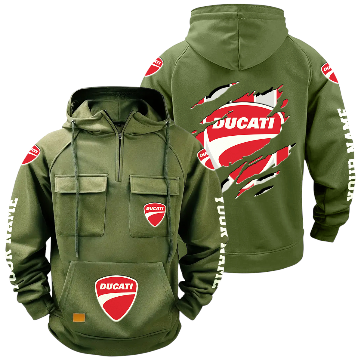 Ducati Motor Holding Quarter Zip Hoodie Multi-Pockets Custom Name