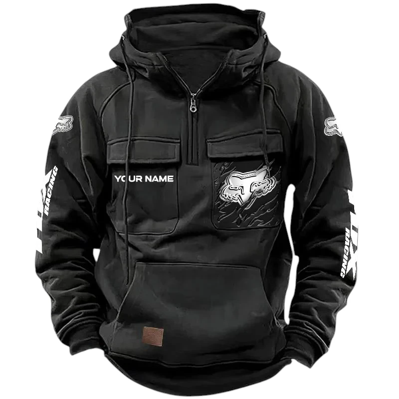 Fox Racing Quarter Zip Hoodie, Sports Hoodie Multi-Pockets, Custom Name HG100525Y41HJRCT1FOX