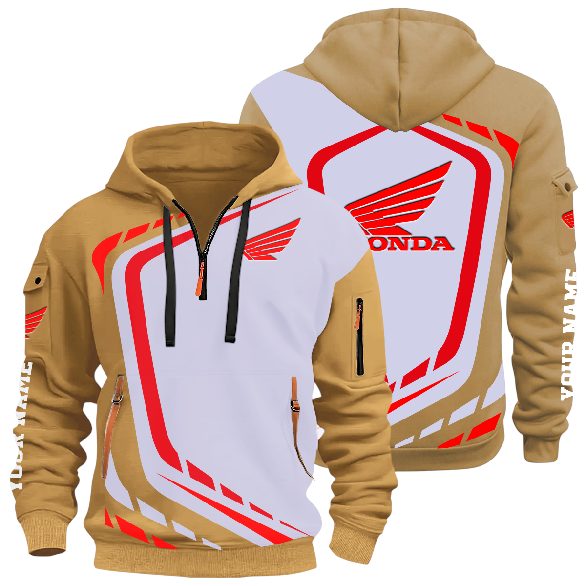 Honda Motor Half Zip Hoodie All Over Prints Multi-Pockets Custom Name