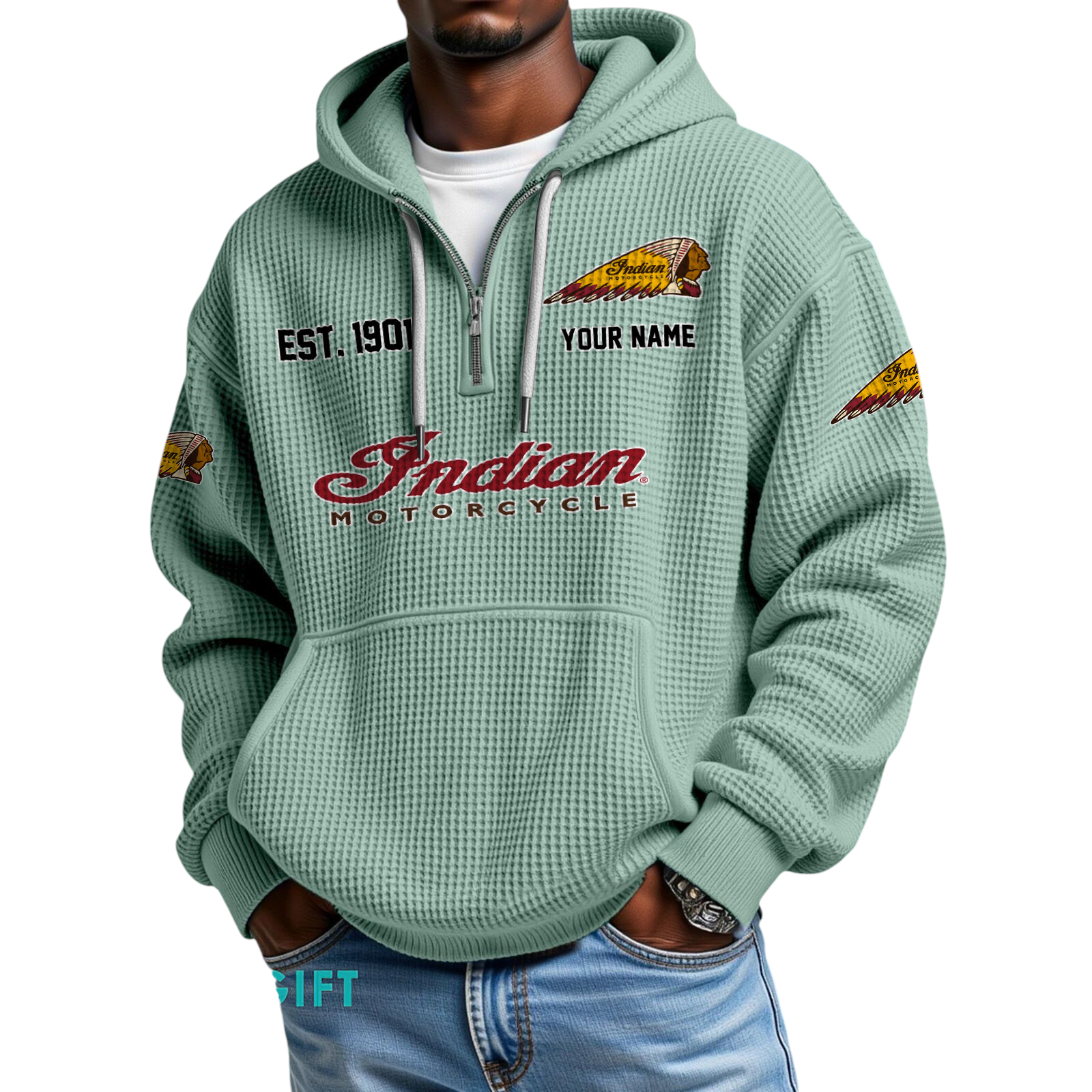 Indian Motorcycle Quarter-Zip Waffle Hoodie Custom Your Name