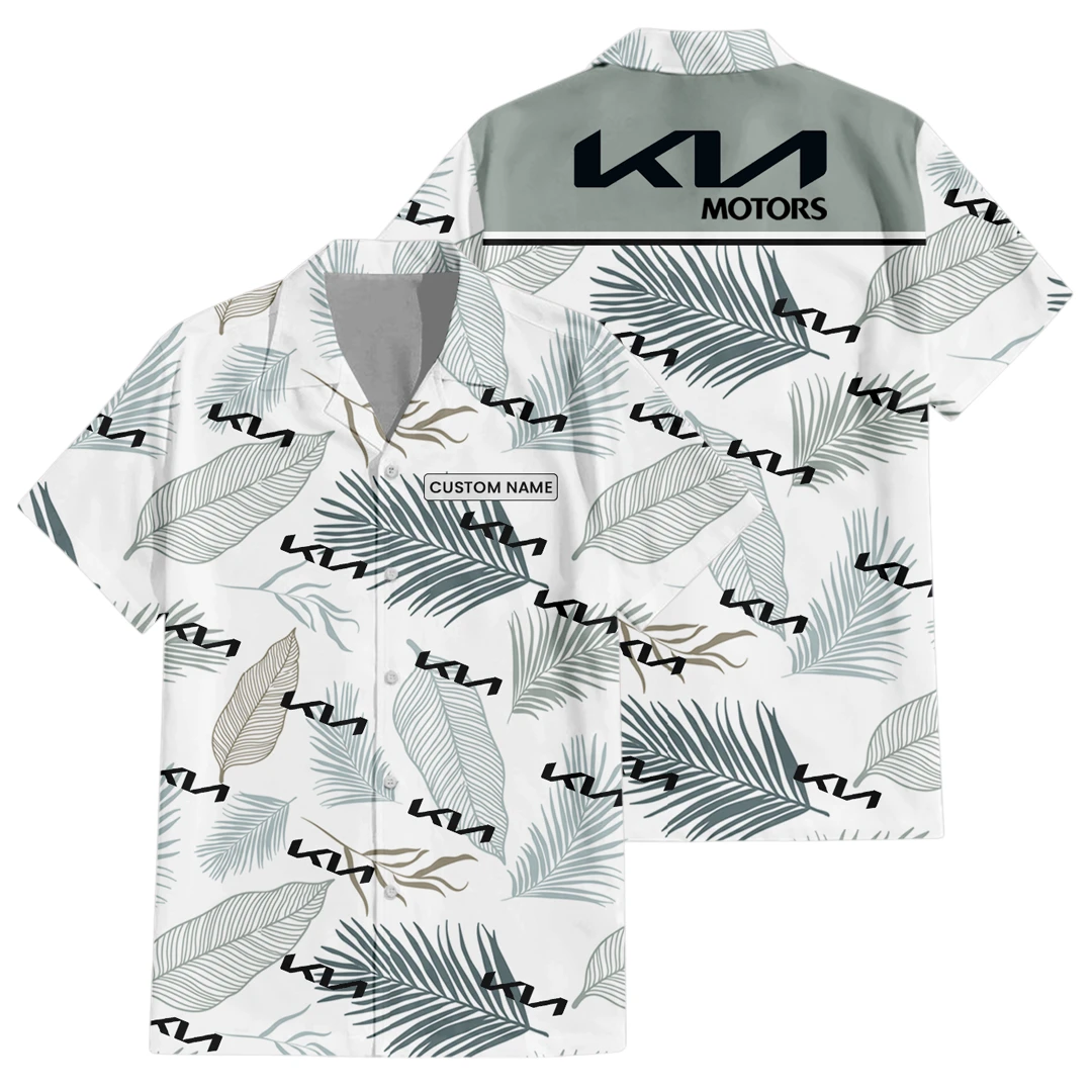 KIA Exclusive Logo Button Up Hawaiian Shirt Tropical Leaves Seamless Pattern All-over Print, Custom Name HIHI180225Y7HWLS1KIA