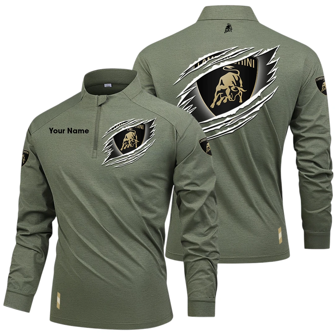 Lamborghini Long Sleeve Shirt, Stand Collar Quarter Zip-up Custom Name HIDI090525Y49LMT05LAM