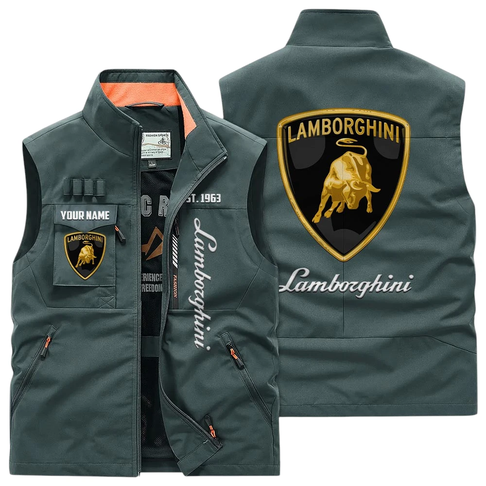 Lamborghini Multi Pocket Vest Sleeveless Men Outdoor Vest Lightweight Custom Name TN170425Y39MPVCT2LAM