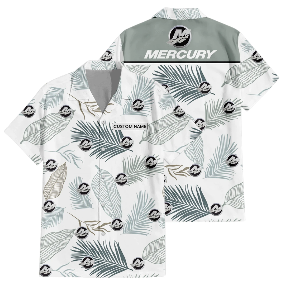 Mercury Exclusive Logo Button Up Hawaiian Shirt Tropical Leaves Seamless Pattern All-over Print, Custom Name HIHI170225Y7HWLS1MER
