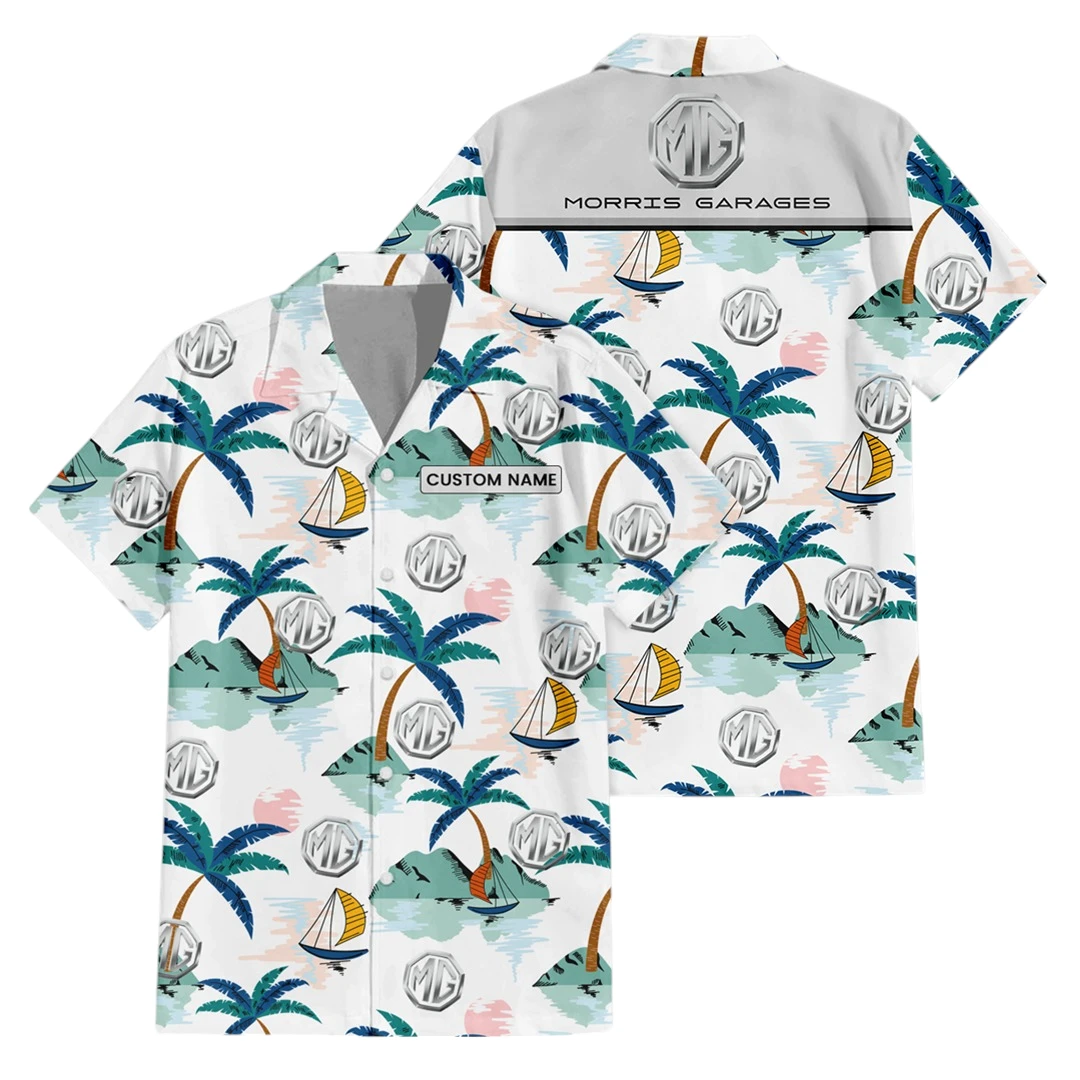 MG Cars Exclusive Logo Button Up Hawaiian Shirt Tropical Landscape Pattern All-over Print, Custom Name HIDI210225Y7HWLS2MGC