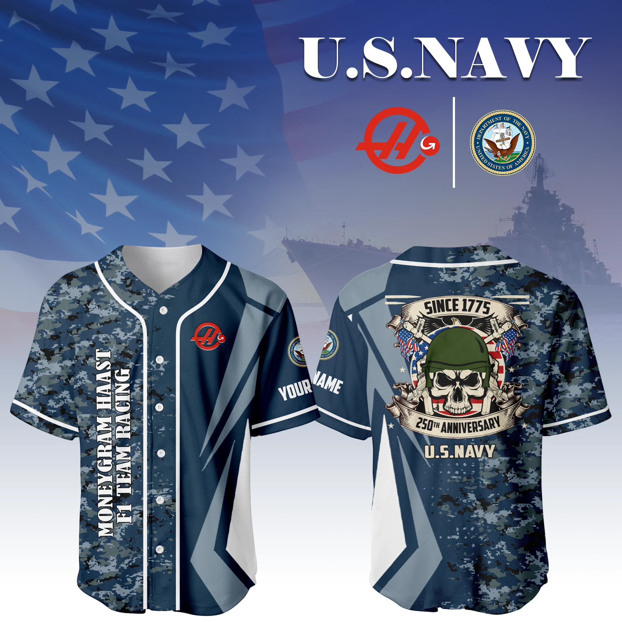 MoneyGram Haas F1 Team Racing x US Navy 250th Anniversary 3D Baseball Jersey Custom Your Name