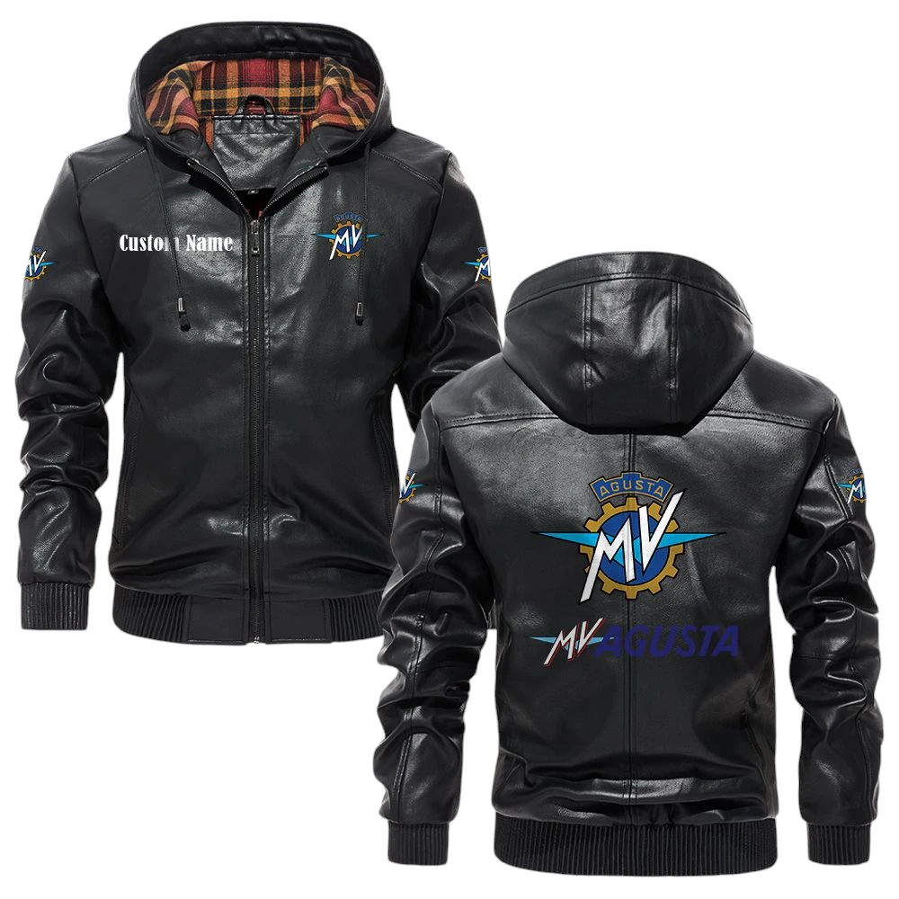 MV Agusta Exclusive Logo Hooded Jacket PU Leather x Durable Windproof Warm Soft Checkered Lining, Custom Name HG030425Y47JHLCT1MVA