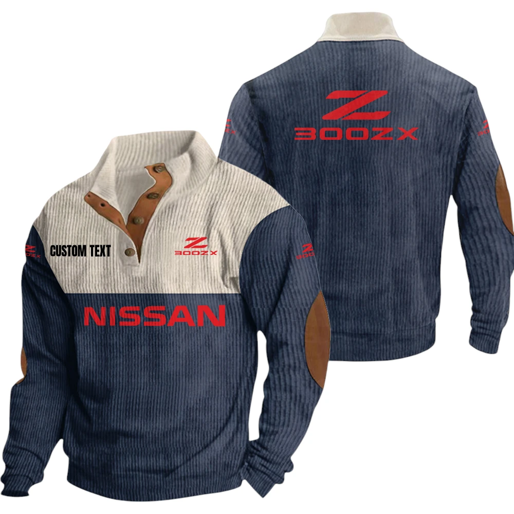 Nissan 300zx Exclusive Logo Knitted Ribbed Corduroy Sweatshirt Mid Stretch Stand Collar Pullover Sweater, Custom Text HG150325Y32RCSCT2NIS