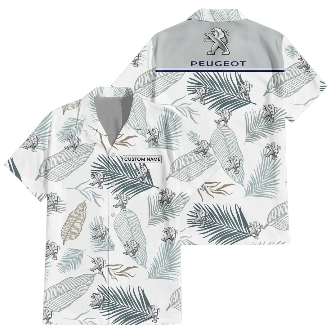 Peugeot Exclusive Logo Button Up Hawaiian Shirt Tropical Leaves Seamless Pattern All-over Print, Custom Name HIHI190225Y7HWLS1PEU