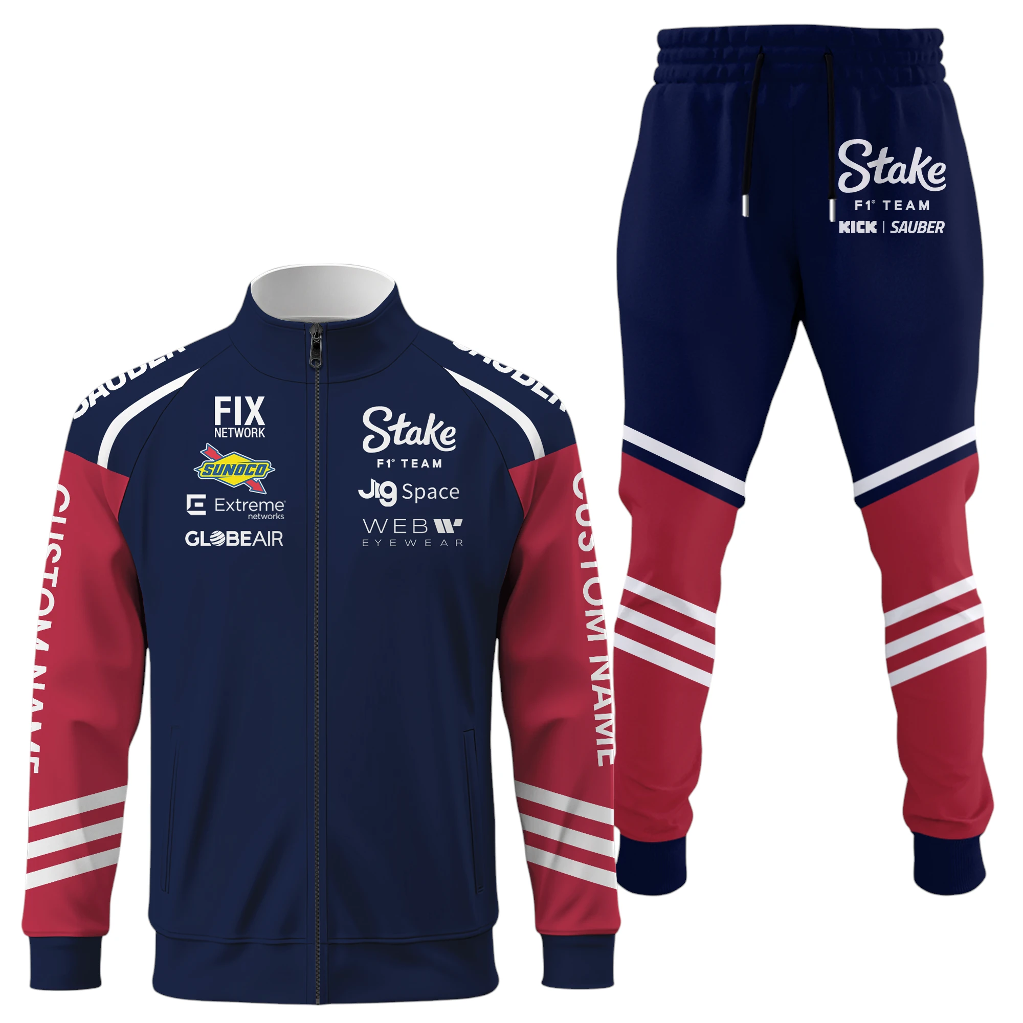 Sauber Motorsport Racing Long Sleeve Shirt Full Zip x Long Pants Set All Over Print, Sports Style Custom Name HIDI020425Y53S16JKSAM
