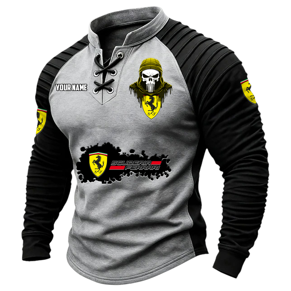 Scuderia Ferrari HP Racing Vintage Lace-Up Long Sleeve Shirt Custom Text