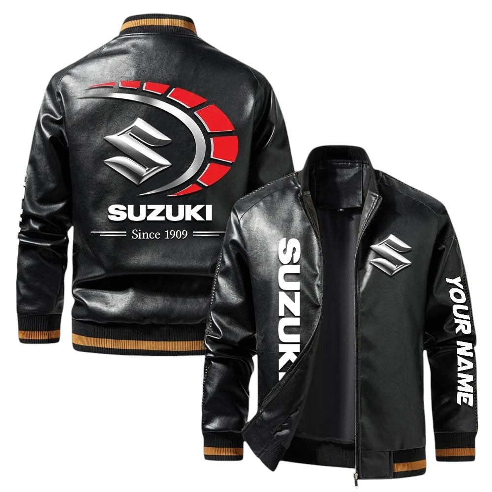 Vintage Suzuki Exclusive Logo Jacket, Classic Ribbed Collar and Striped Cuffs, Custom Name TN01042025Y12LJ93CT2SUZ